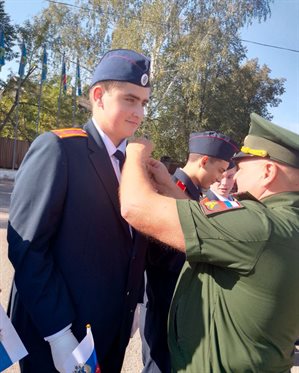 Первого сентября прошло посвящение студентов-первокурсников в кадеты. Красивая парадная форма военного образца, белые рубашки, белые перчатки. Церемония тожественного принятия присяги. Вручение нагрудного кадетского значка. Все это придает особый статус каждому из студентов, дисциплинирует. Иерей, настоятель храма Александр Дмитриенко дал духовные наставления ребятам: напомнил кадетам о святом долге защиты своей Родины, дал наказ, что очень важно с достоинством нести высокое звание кадета, стараться хорошо учиться.