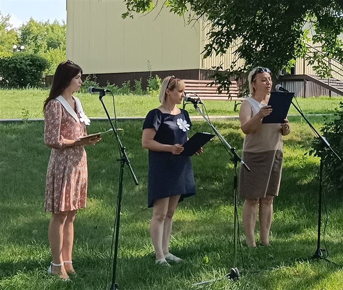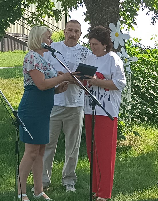 Торжество состоялось в парке культуры и отдыха. Общественными медалями «За любовь и верность» награждены супруги, прожившие в браке более двадцати пяти лет: Трубины Валерий Константинович и Марина Геннадьевна, Япишины Сергей Павлович и Зилира Габдулловна. Награды нашим землякам вручила О. Ф. Карабанова, первый заместитель главы администрации МО «Базарносызганский район»..jpg)