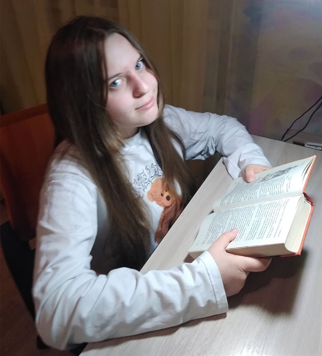 «Я очень люблю читать, потому что книги всегда открывают передо мной новые миры и приключения. Такой мир, как в моих любимых книгах про Гарри Поттера. Зная о моем увлечении, взрослые часто на праздники и день рождения дарят мне книги. В моей личной библиотеке уже есть рассказы В. Драгунского, Н. Носова, «Алиса в зазеркалье», «Пеппи Длинныйчулок», «Полианна», «Приключения барона Мюнхаузена» и другие. В районной библиотеке я познакомилась с творчеством А. С. Пушкина, А. П. Чехова, И. А. Бунина, А. И. Куприна, К. Чуковского, Э. Успенского, Е. Шварца, Р. Киплинга, А. Волкова, К. Булычева и многих других писателей. Считаю, что чтение – это не просто хобби, это стиль жизни, который я надеюсь сохранить на всю жизнь. А если бы мне посчастливилось побеседовать с писателем Киром Булычевым, я обязательно бы спросила его: «Откуда он узнал, как будет выглядеть будущее?» В своем ближайшем будущем я мечтаю поехать на экскурсию в г. Москву и обязательно посетить Кремль».