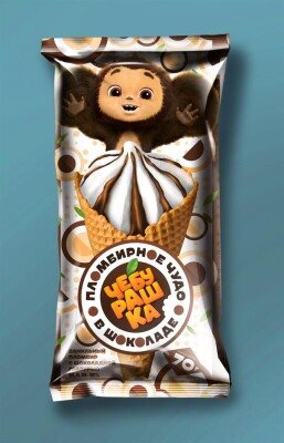 пломбир ванильный в вафельном сахарном рожке «Чебурашка», мдж 15%, со вкусом шоколада и шоколадной глазурью, 70 г