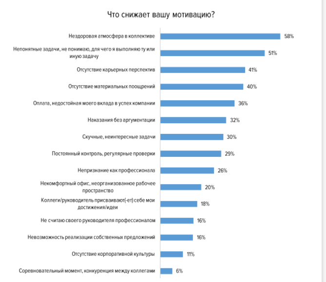 Примечательно, что жителей нашего региона меньше всего мотивируют отсутствие других вариантов трудоустройства (5%), конкуренция между коллегами (8%) и контроль за результатами их работы (10%).