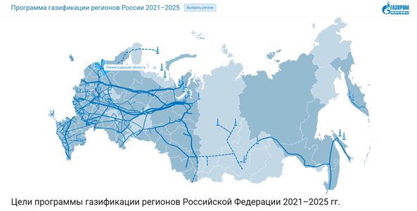 «Газпром межрегионгаз» разработал интерактивную карту газификации регионов России