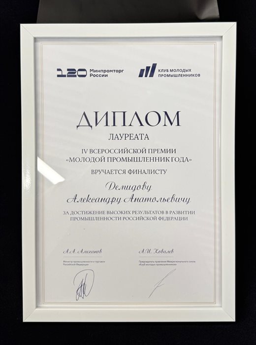 Александр Демидов и его награда IV Всероссийской премии «Молодой промышленник года»