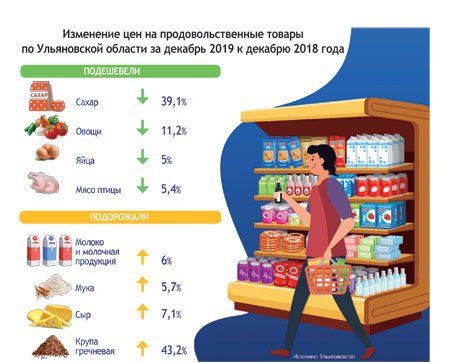 Положительный рекорд в 2019 году поставил сахар: его стоимость значительно снизилась. В результате сейчас цены на него самые низкие за последние 8 лет (25,48 рубля за килограмм). В отличие от гречки, этой продукцией Ульяновская область обеспечивает себя самостоятельно. За год Ульяновский сахарный завод производит порядка 60 тысяч тонн сахара, что больше внутренней потребности региона. В 2020 году для сохранения посевных площадей и обеспечения стабильной работы предприятия из областного бюджета запланировано выделение 20 млн рублей на предоставление погектарной субсидии свеклосеющим хозяйствам региона, так что запасаться сахаром не стоит: его стоимость вырасти не должна. Более того, эксперты полагают, что стабильные цены на сахар позволят избежать заметного роста цен на кондитерские изделия.