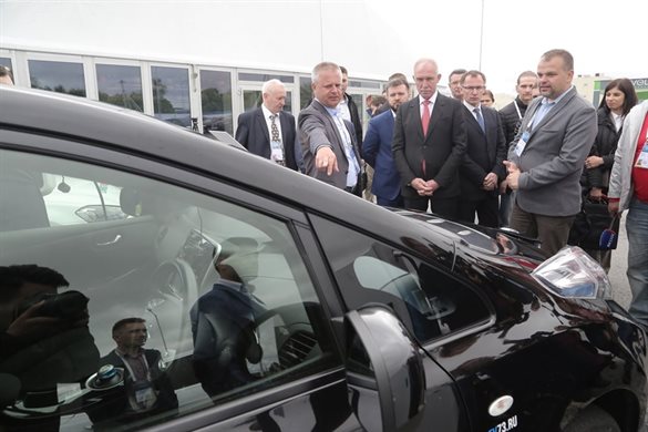 Перед подписанием соглашения губернатор осмотрел выставку электромобилей.
