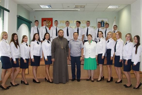Напутственным словом молодых офицеров уголовно-исполнительной системы также поддержали председатель Совета ветеранов УФСИН России по Ульяновской области Надежда Плаксина, помощник начальника Управления по работе с верующими, отец Святослав Еренков и временно исполняющая обязанности начальника отдела воспитательной и социальной работы с личным составом Светлана Кадыкова.