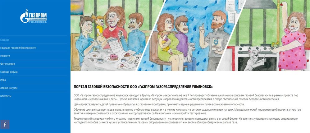 В декабре 2018 года ООО «Газпром газораспределение Ульяновск» запустило новый интернет-портал по газовой безопасности для детей. По итогам занятий в 2018 году обучение газовой безопасности прошли порядка 32 тысяч учащихся.