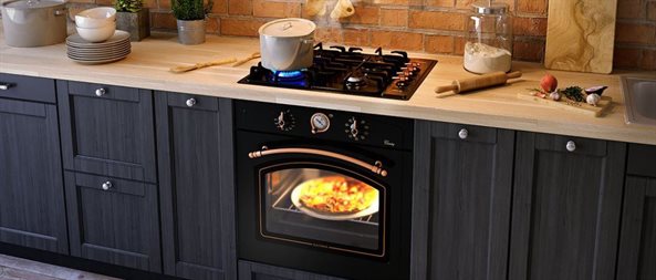 Независимый духовой шкаф оформлен в классическом стиле и оснащен поворотными переключателями с сенсорами. На цифровом дисплее отображается температура, время и другие значения, информирующие пользователя о процессе приготовления продуктов, что обеспечивает более комфортное использование. Полезный объем составляет 52 л. Предусмотрен электрический гриль. Газ-контроль предотвращает утечку газа — если пламя случайно гаснет, его подача прекращается.