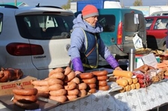 А чтобы покупателям было не скучно стоять в очередях, на переносной сцене для них выступали коллективы художественной самодеятельности. Помимо продуктовых изысков, фермеры радовали гостей ярмарки товарами народного промысла: пуховыми платками, изделиями из шерсти, валенками, а также разнообразными саженцами и семенами для будущего дачного сезона.