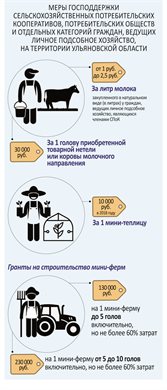 Особое внимание уделяется развитию бизнеса в сельской местности. Как заметил руководитель областного аграрного ведомства Михаил Семенкин, в рейтинге субъектов по количеству созданных кооперативов в 2019 году Ульяновская область заняла восьмую позицию из 89 субъектов России. В рамках реализации федерального проекта «Создание системы поддержки фермеров и развитие сельской кооперации» в региональном минсельхозе в 2019 году прошло два конкурсных отбора по предоставлению грантов на реализацию проектов «Агростартап». Всего на участие в конкурсе было подано 96 заявок, победителями стали 22 человека из 12 районов области. Субсидии направлены на развитие молочно-мясного скотоводства и растениеводства.