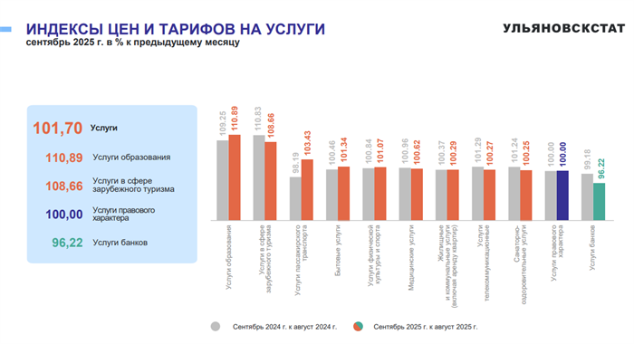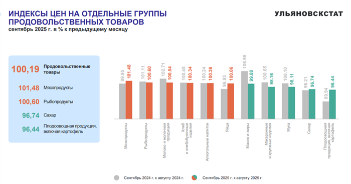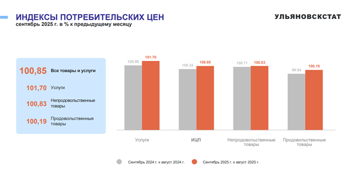 По данным Росстата, в сентябре 2025-го потребительские цены выросли в Ульяновской области в среднем на 0,85%.