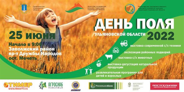 25 июня с 9:00 до 16:00 на проспекте Дружбы народов в Заволжском районе Ульяновска пройдёт традиционная выставка-демонстрация, посвящённая окончанию весенне-полевых работ «День поля - 2022».