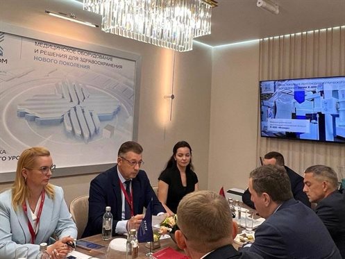 Во встрече приняли участие руководитель управления проектами по выпуску продукции гражданского назначения АО «Концерн ВКО «Алмаз - Антей», генеральный директор ООО «ВКО Медпром» Борис Залманов, руководитель отдела продаж медицинской продукции АО «Концерн ВКО «Алмаз - Антей» Павел Степин, заместитель председателя правительства Ульяновской области Анна Тверскова.