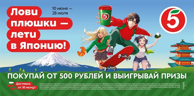 Торговая сеть «Пятёрочка» запускает яркую акцию «Лови плюшки — лети в Японию!», которая обязательно придётся по вкусу поклонникам аниме, японской культуры и азиатской кухни. Главный приз — незабываемое путешествие в Японию, страну высоких технологий, цветущей сакуры и любимых героев поп-культуры.