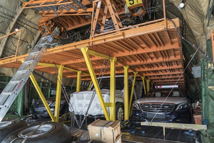 В релизе компании говорится, что в число 30 доставленных ими машин вошли 25 седанов представительского класса, три полицейские машины и два бронированных внедорожника. В грузовом отсеке воздушного судна машины выстроили в два яруса, используя технологию, разработанную в 1996 году при подготовке к авторалли Париж-Пекин.