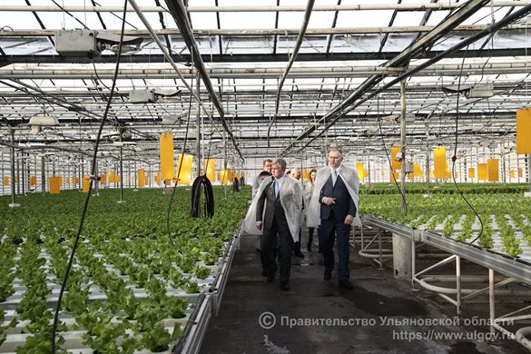 Перед этим губернатор Ульяновской области Алексей Русских осмотрел площадки предприятия АО «Тепличное», где выращивают зелень и цветы.