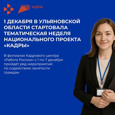 Как сообщил руководитель агентства по развитию человеческого потенциала и трудовых ресурсов Ульяновской области Павел Калашников, в рамках тематической недели нацпроекта «Кадры» состоятся мероприятия по содействию занятости граждан, в числе которых – «Ярмарки возможностей». В декабре они пройдут в пяти муниципальных образованиях региона: в Ульяновске, Димитровграде, а также в Майнском, Старокулаткинском и Барышском районах. Более 150 работодателей предоставят актуальные вакансии. Консультанты помогут индивидуально спланировать карьеру и подобрать наиболее подходящую вакансию с учетом жизненной ситуации. Соискатели, находящиеся в поиске работы, смогут узнать о доступных предложениях, мерах государственной поддержки в сфере занятости, профессиональном обучении и получении дополнительного образования в рамках национального проекта «Кадры». Также участники смогут посетить консультационные площадки социальных партнеров, фонда поддержки участников СВО и членов их семей «Защитники Отечества».