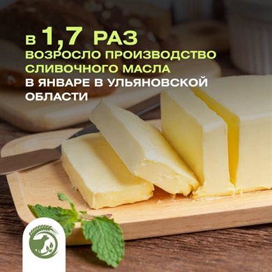 В январе в Ульяновской области производство сливочного масла выросло в 1,7 раза