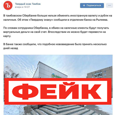 В Сети распространяется информация, что якобы в тамбовском Сбербанке нельзя обменять иностранную валюту и рубли на наличные. Вместо кеша клиенты будут получать виртуальные дензнаки на свой счет, которые потом можно перевести на карту. Такое нововведение якобы приняли несколько дней назад.