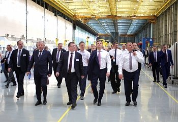 Участники делегации в сопровождении генерального директора ПАО «Ил» Юрия Грудинина проверили ход работ по реализации основных самолетных программ, модернизации производственных мощностей и запуску новой линии бесстапельной автоматизированной сборки для военно-транспортных самолетов, а также обсудили вопросы загрузки предприятия и увеличения объемов выпуска продукции в рамках развертывания серийного производства тяжёлого военно-транспортного самолета Ил-76МД-90А.