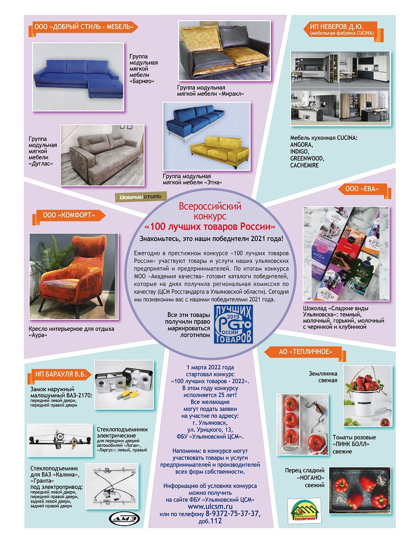 Знакомьтесь: товары и услуги Ульяновской области - победители Всероссийского конкурса «100 лучших товаров России»