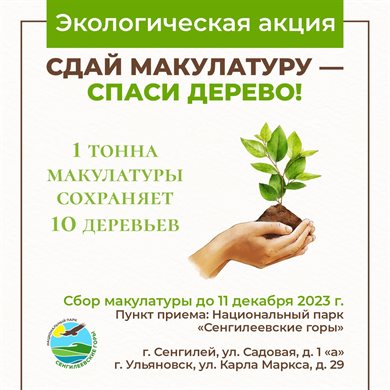 В национальном парке «Сенгилеевские горы» стартовала экологическая акция «Сдай макулатуру — спаси дерево!».