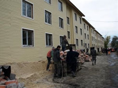 - На каждый подъезд поставлена бригада, - рассказал глава администрации Сенгилеевского района Александр Бердников. - К концу октября планируем выполнить основные строительные работы, подвести газ, установить плиты и нагреватели для воды. Уже начаты работы по благоустройству. Завозим землю, планируем посадить деревья и кустарники, установить лавочки и урны, а также контейнеры для мусора.