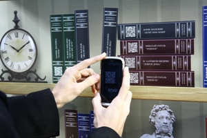 Современное книгохранилище умещается на рекламной растяжке – обложки романов и сборников нарисованы, на каждой – маленький квадратик, эдакий аналог штрих-кода. Навел на него фотоаппарат телефона или планшета – и книга автоматически загружается в гаджет. После этого скачанную книгу можно читать по дороге на работу или учебу.