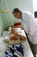 - В нашем отделении проводятся уникальные операции, - поделился с нами Ильдус Гумеров, заведующий торакальным и сосудистым отделением. - Большинство повреждений и травм у пациентов, попадающих к нам, сопровождается повреждением нервов, вен, костных структур, не говоря уже о мышцах. Поэтому мы работаем в тесном контакте с сосудистыми хирургами, травматологами, нейрохирургами. В особо экстренных случаях, когда не удается транспортировать больного к нам в больницу, вся бригада врачей может выехать в любое лечебное учреждение нашей области для оказания помощи.