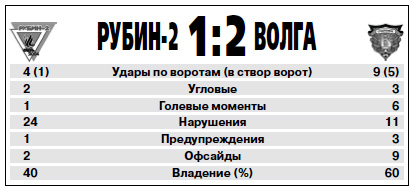 ВОЛГА: Соколов, Мухаметдинов (Минеев, 30), Абрамов, Захаров, Шоркин, Чудин, Хабибуллин, Цыганцов, Бикчантаев, Сафин, Бобылев (Халявин, 46).