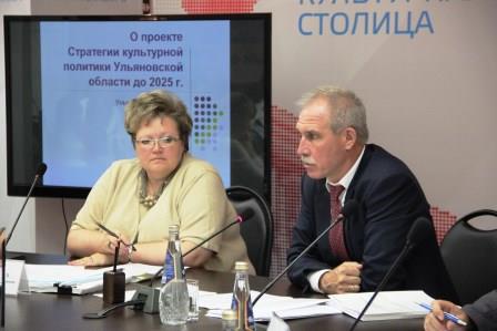 Напомним, авторами проекта Стратегии культурной политики Ульяновской области до 2025 года стали старший научный сотрудник сектора экономики искусства и культурной политики Государственного института искусствознания Екатерина Хаунина, доктор экономических наук, заведующая сектором эффективности социальной сферы Института экономики РАН Валентина Музычук, кандидат исторических наук, культуролог, директор АНО по развитию исследований и проектов в области культуры и искусства «Новый институт культурологии», эксперт в области культурной политики, руководитель рабочей группы по подготовке Стратегии Нина Кочеляева. Научным консультантом по вопросам подготовки проекта Стратегии стал культуролог, киновед, доктор искусствоведения, профессор ВГИК, президент АНО по развитию исследований и проектов в области культуры и искусства «Новый институт культурологии», Заслуженный деятель Искусств РФ, программный директор Московского Международного кинофестиваля Кирилл Разлогов.