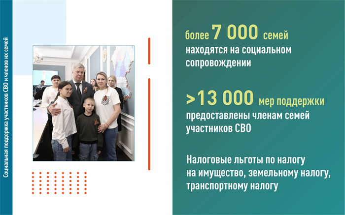 После начала СВО Ульяновская область превратилась в мощный тыл для фронта. На социальном сопровождении находится более 7 тысяч семей военнослужащих, предоставлено свыше 13 тысяч мер социальной поддержки. Создан центр реабилитации участников СВО на 60 человек со стационарным и 40 с дневным пребыванием, где в 2024 году более
