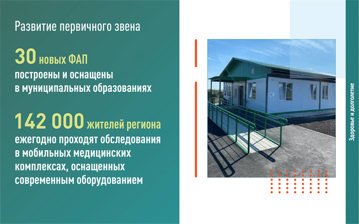 В 2024 году регион достиг минимальных показателей младенческой смертности за всю историю - 4,4 промилле, что на 0,4 % ниже, чем в предыдущем году. Проведен ремонт во всех 27 детских поликлиниках, открыта новая поликлиника для взрослых в микрорайоне Новая Жизнь, обслуживающая 25 тысяч человек.