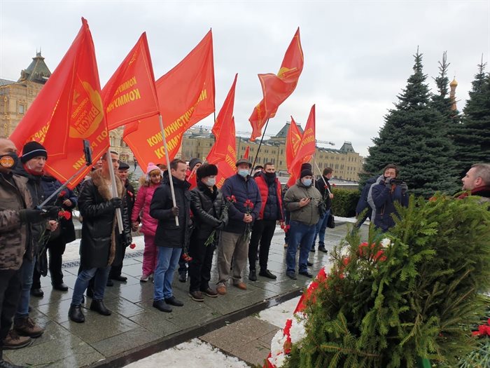 Под руководством председателя ЦК политической партии КОММУНИСТИЧЕСКАЯ ПАРТИЯ КОММУНИСТЫ РОССИИ, руководителя фракции КПКР в Законодательном собрании Ульяновской области Максима Сурайкина, на Красной площади состоялось торжественное возложение цветов в честь дня рождения Иосифа Виссарионовича Джугашвили (Сталина).