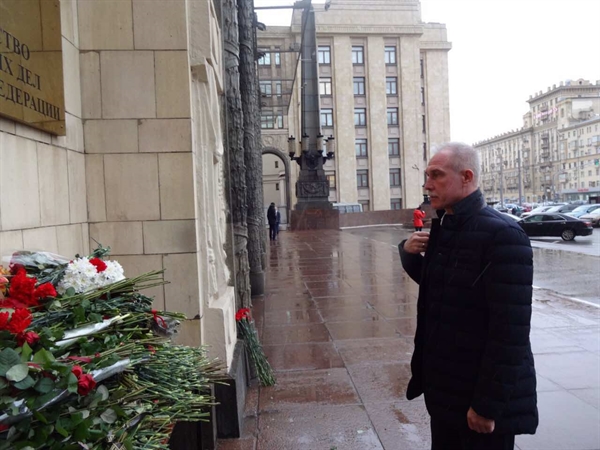 С утра к зданию главного внешнеполитического ведомства в память о постпреде Виталии Чуркине москвичи и гости столицы начали приносить цветы, свечи и записки. «Вы любили и боролись за Россию так, что мы гордимся, что живем и родились в России», — сообщают текст одной из записок СМИ.
