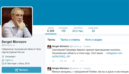 Согласно февральскому рейтингу «Медиалогии» глава Ульяновской области занял 20 место среди губернаторов-блогеров.