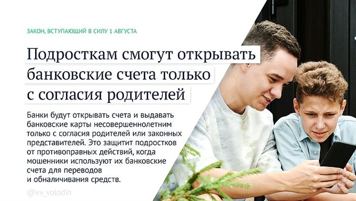 Банки будут открывать счета и выдавать банковские карты несовершеннолетним только с согласия родителей или законных представителей. Это защитит подростков от противоправных действий, когда мошенники используют их банковские счета для переводов и обналичивания средств.