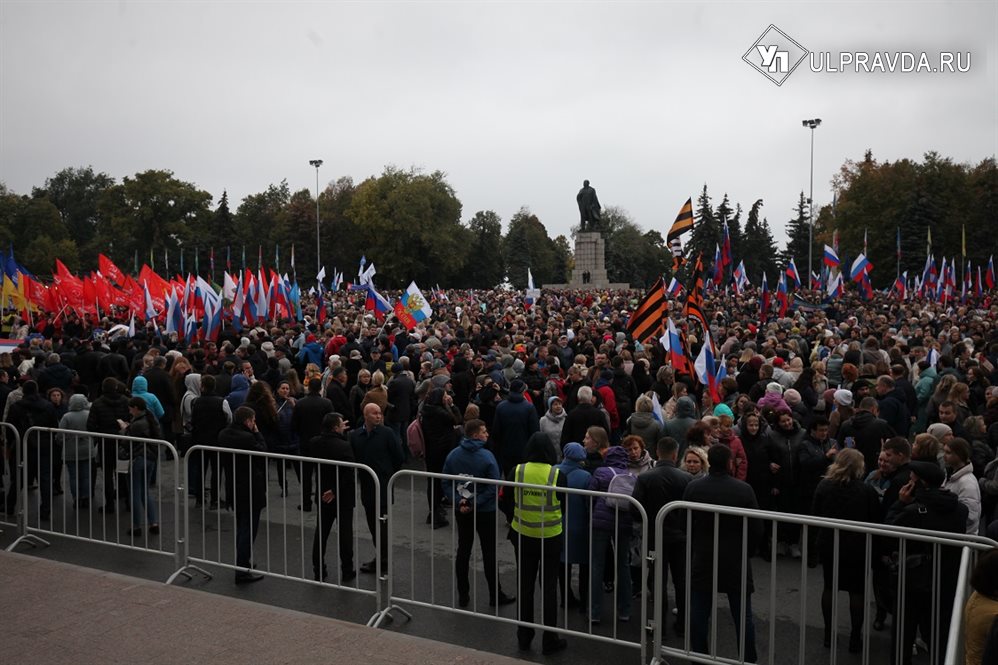 Всего за неполный час - все-таки волжский ветер в тот день был суров - свою солидарность с новыми гражданами РФ и согласие с президентом пришло выразить более 12,5 тысячи ульяновцев и гостей города.