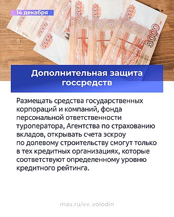 Размещать средства государственных корпораций и компаний, фонда персональной ответственности туроператора, Агентства по страхованию вкладов, открывать счета эскроу по долевому строительству смогут только в тех кредитных организациях, которые соответствуют определенному уровню кредитного рейтинга.