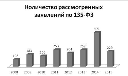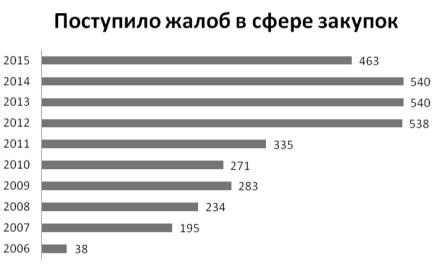 За 2015 год специалисты Ульяновского УФАС России рассмотрели 463 жалобы на действия (бездействие) конкурсной, аукционной или котировочной комиссий заказчиков, уполномоченных органов при осуществлении закупок в рамках закона о контрактной системе. Из них 141 (30,5%) признаны обоснованными, еще 43% жалоб были признаны необоснованными. В результате их рассмотрения управление выдало государственным и муниципальным заказчикам 109 предписаний о необходимости устранить нарушения закона о контрактной системе.