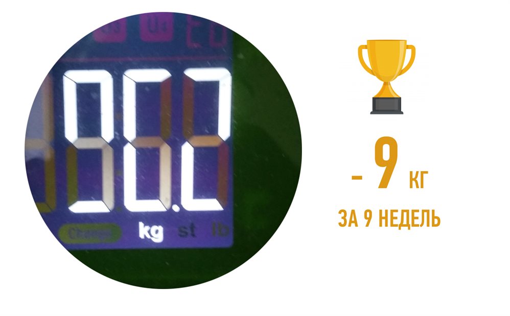 За 2 месяца марафона мне удалось сбросить 9 кг. И для этого пришлось собрать всю волю в кулак и проявить жестко контролировать себя. Когда хочется конфетку или пиццу, ты ешь яблоко, потому что оно не такое сладкое и вредное. Хотя и яблок можно съесть не больше одного в день, и только до обеда. Но когда вес начал уходить и я увидела результат, который заслужила благодаря труду и усилиями над собой, мозг начал по-другому работать. И вот уже лежит рядом шоколадка на столе, а ты не обращаешь на нее никакого внимания.