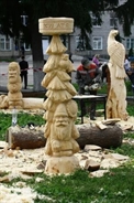 Творческая позиция резчиков из Чувашии оказалась принципиально другой. Они работали современными инструментами – бензопилами. Главными для них были социальные проблемы современности, а не фольклорные мотивы. Организаторы фестиваля связались с ними практически в последний момент.