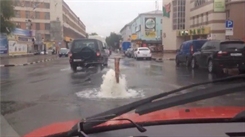 Около полудня 7 июня в центре Ульяновска на улице Карла Маркса возле ТЦ «Амарант» из-под асфальта забила струя. Вероятно, под толстым слоем дождевой воды никто бы и не заметил прорыва на водопроводе. Но довольно большой фонтан не увидеть трудно. Тем более коммунальщики обозначили неисправность, воткнув палку с оранжевой тряпкой в колодец, откуда и вытекает вода.