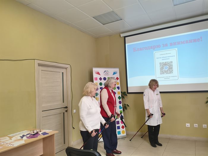 В завершение занятия Лилия Кирилина провела мастер-класс по скандинавской ходьбе.