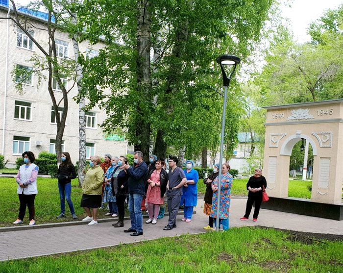 - В условиях опен-эйр артисты исполнили несколько всем известных песен военных лет, композиции советской эстрады, сделав упор на лирические и оптимистичные мелодии, рассказала ulpravda.ru пресс-секретарь ЦК МСЧ Ирина Ахметзянова. - Пациенты наблюдали концерт в окна, аплодировали и подпевали артистам. А медики, не задействованные в лечебном процессе, сняли защитные костюмы и вышли на площадку к артистам. Занятые доктора и медсестры слушали концерт на рабочих местах.