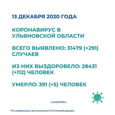Напомним: в Ульяновской области, по данным регионального оперштаба, на 13 декабря подтверждено 31479 случаев заражения ковидом, из них 291 приходится на минувшие сутки.