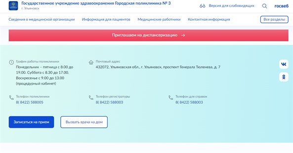 Ульяновская городская поликлиника № 3 первой в стране запустила официальный сайт на платформе «Госвеб»
