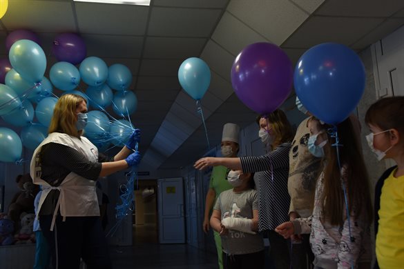 В связи с непростой эпидемиологической ситуацией в Ульяновской области волонтёры не смогли сами пообщаться с ребятами, шары детям передали сотрудники медучреждения.