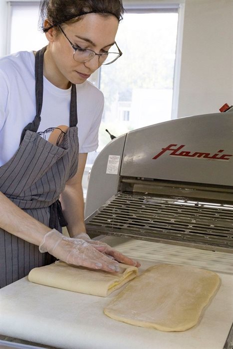 Настя отмечает, что процесс изготовления круассана очень трудоемкий и занимает не менее 30 часов. В первый день замешивается тесто, оно должно пройти ферментацию в холодильнике. С утра на следующий день кондитер начинает слоить тесто, вкатывать масло. Далее его формуют и либо сразу выпекают, либо замораживают. А после заморозки тоже нельзя сразу выпекать. Нюансов очень много: должна быть определенная влажность, климат в помещении и так далее.