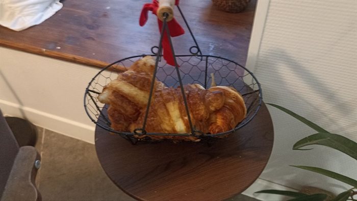 Я обратила внимание на элемент декора - вазочку с, как мне показалось, декоративными, ненастоящими круассанами.